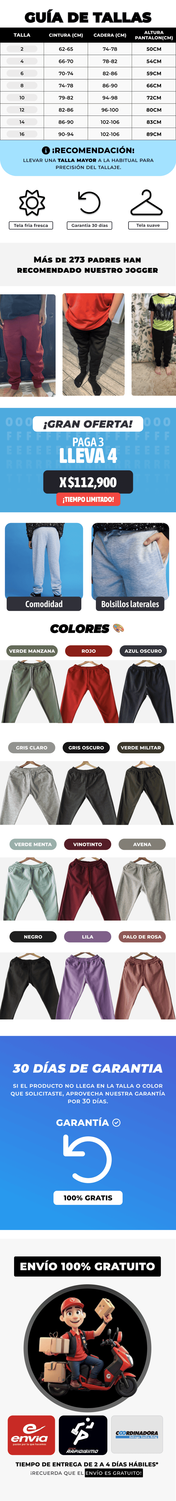 Ya recibi los joggers muy conforme y satisfecha, le quedaron bien al niño